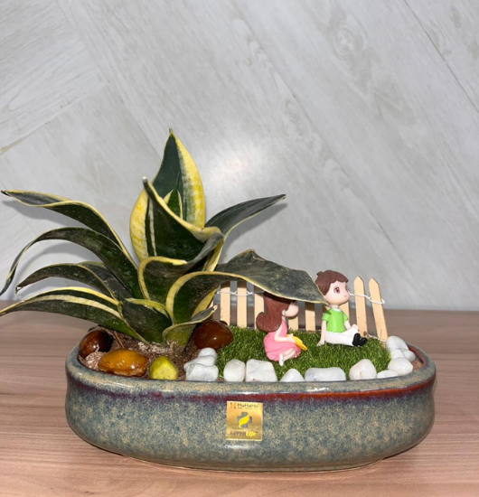 - Medium Theme Mini Garden -Artistic design and figurines, and stones.
